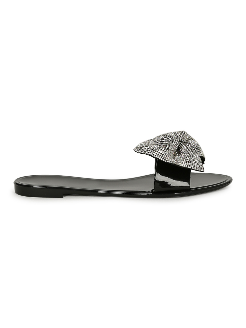 Women S Rhinestone Bow Jelly Open Toe Slide Flat Sandal 19812 Walmart Com